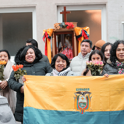 Im Rahmen des Encuentro - Treffen der Plattform Weltkirche feierte die lateinamerikanische Gemeinde gemeinsam mit Bischof Mons. Anibal Nieto Guerra aus der Partnerdiözese der ED Wien, San Jacinto in Ecuador, gemeinsam mit der Wiener Pfarre Akkonplatz die Heilige Messe in der Wiener Kirche St. Florian.